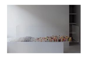 This installation is a collaboration between DSDHA, the ceramic artist Natasha Daintry and Maureen Doherty, the owner of Egg, a gallery and shop in Knightsbridge, London.