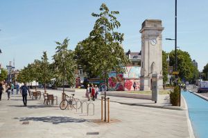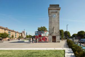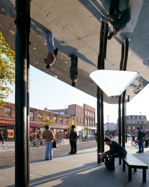 As part of DSDHA’s Stockwell Framework, the new bespoke Bus Stop Canopy on Binfield Road is a catalyst for a Masterplan, seeking to rebalance this busy traffic node in favour of pedestrians and cyclists.
