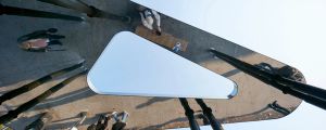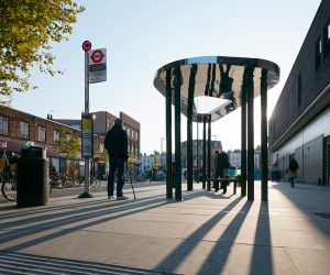 The shape of the Bus Stop’s canopy and its reflective surfaces demand attention. They act as a visual anchor, capturing the flow and movements at this busy interchange and turning it into a meeting space. They are purposely forceful, almost insisting that the passers-by lift their eyes from their smartphone screens and be present, aware of their surroundings.