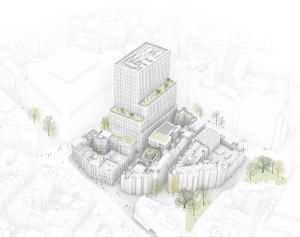 The masterplan comprises four individual schemes: One Museum Street, an elegant and highly articulated stepped tower with a cascade of greened terraces across its 19 storeys, each one designated with a different biodiverse planting strategy; High Holborn and Vine Lane, two newly built 6-storey residential buildings; and West Central Street, a part new build and part retrofitted early Victorian block, providing a mix of houses, including affordable homes.