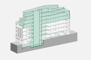 The scheme comprises Category A office accommodation on all levels from Lower Ground to Floor Seven, with co-working space and cafe at Ground Floor and cycle and changing facilities on the Lower Ground.